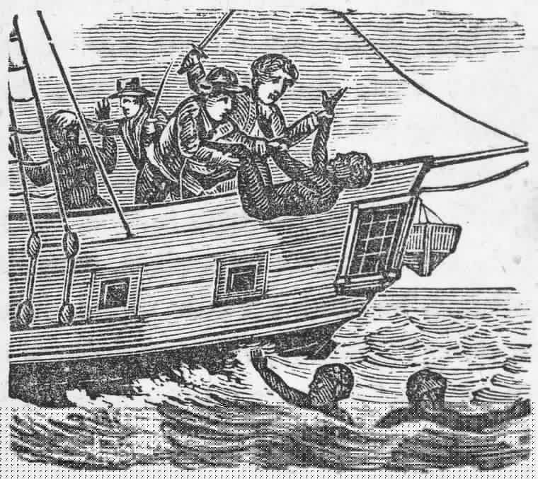 The image below is a depiction of the British Zong Massacre of 1782. The Zong set sail to Jamaica with 470 enslaved Africans. The greed of the captain and other crew members led them to take an additional 29 people, even though the ship could not accommodate so many human beings. They sailed through an area referred to as “the Doldrums” for its long periods of no wind. Stranded and sick, the captain decided to “jettison some of the cargo” to save the ship, and “provide the ship owners the opportunity to claim a loss on their insurance.” They threw 132 people overboard, and another 10 gave themselves to the see in what the captain described as in the courts as an “Act of Defiance”. The owner of the ship ended up filing the claim, and the courts sided with him in 1782. However, this massacre got public attention in Britain and helped gain momentum with the abolition movement there.