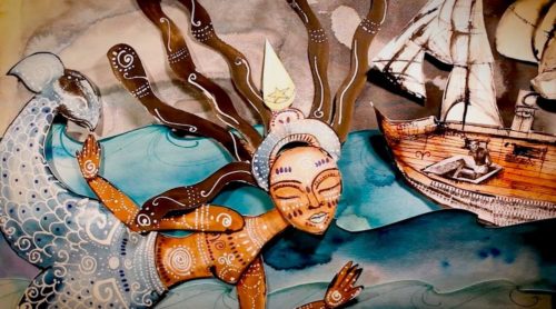 This story shines a little more light on different ways that the ocean’s water hold memories. Below is a depiction of the Yoruba orisha Yemaya, who lives in and has dominion over oceans, seas, and lakes. It is said that she traveled across the ocean with those who worshipped her on the slave ships, and because of her protection during that journey, she became one of the most beloved Orishas in the ‘New World’.
